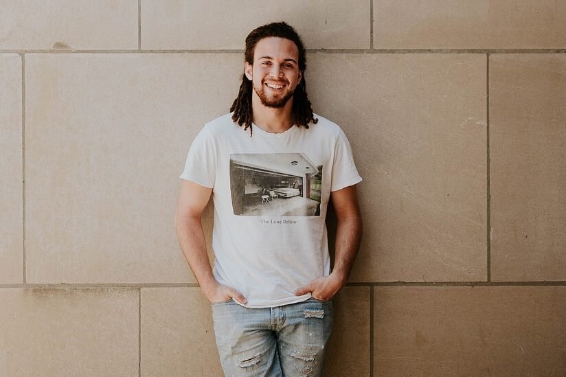 A crowd of people is gathered at an outdoor event, with one person holding a cardboard sign that reads 'HUMANITY NOW'. The scene includes various individuals wearing casual clothing, some with hats and masks. The background features urban elements and blurred foliage, suggesting a public demonstration or protest.
